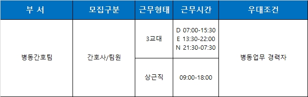 - 자격요건 : 간호사 면허증 소지자