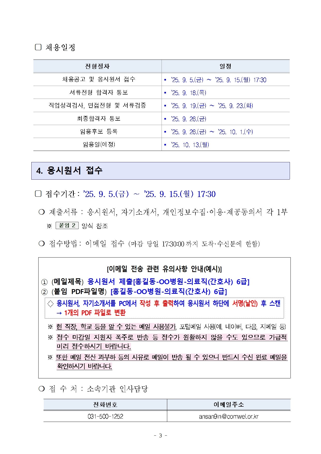 [~9/15] 근로복지공단 안산병원 2025년 의료직(간호사) 신규채용공고