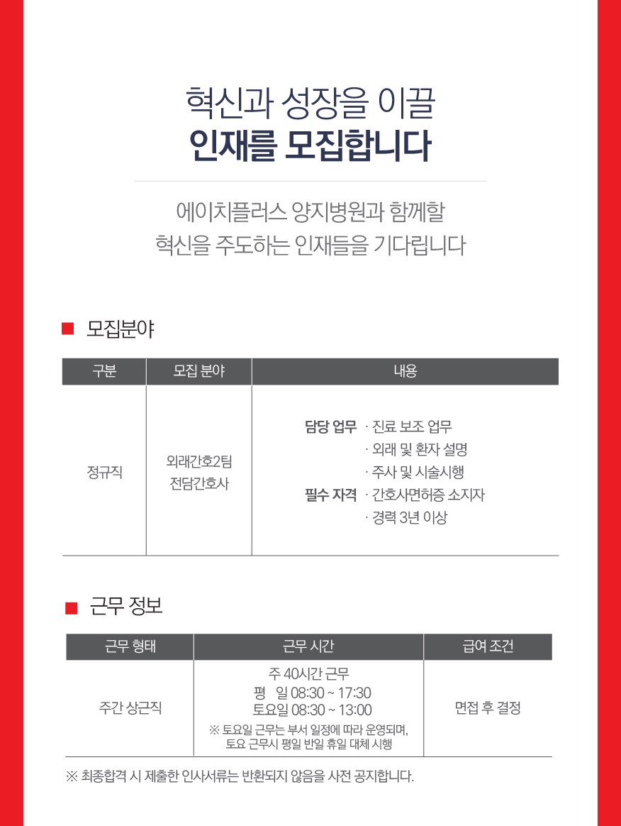 [채용시까지] 에이치플러스 양지병원 2025년 외래간호팀 전담간호사 모집공고